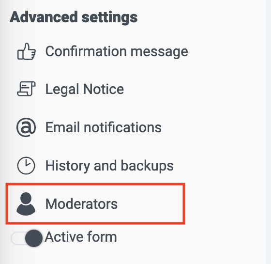 Moderators For more information on moderation, see Adding moderators to your forms below.