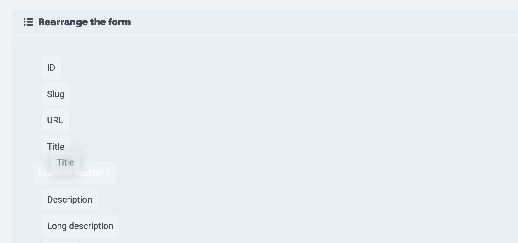 The order of the questions and sections can be managed by clicking on the Rearrange questions button, then dragging and dropping them into the right order.