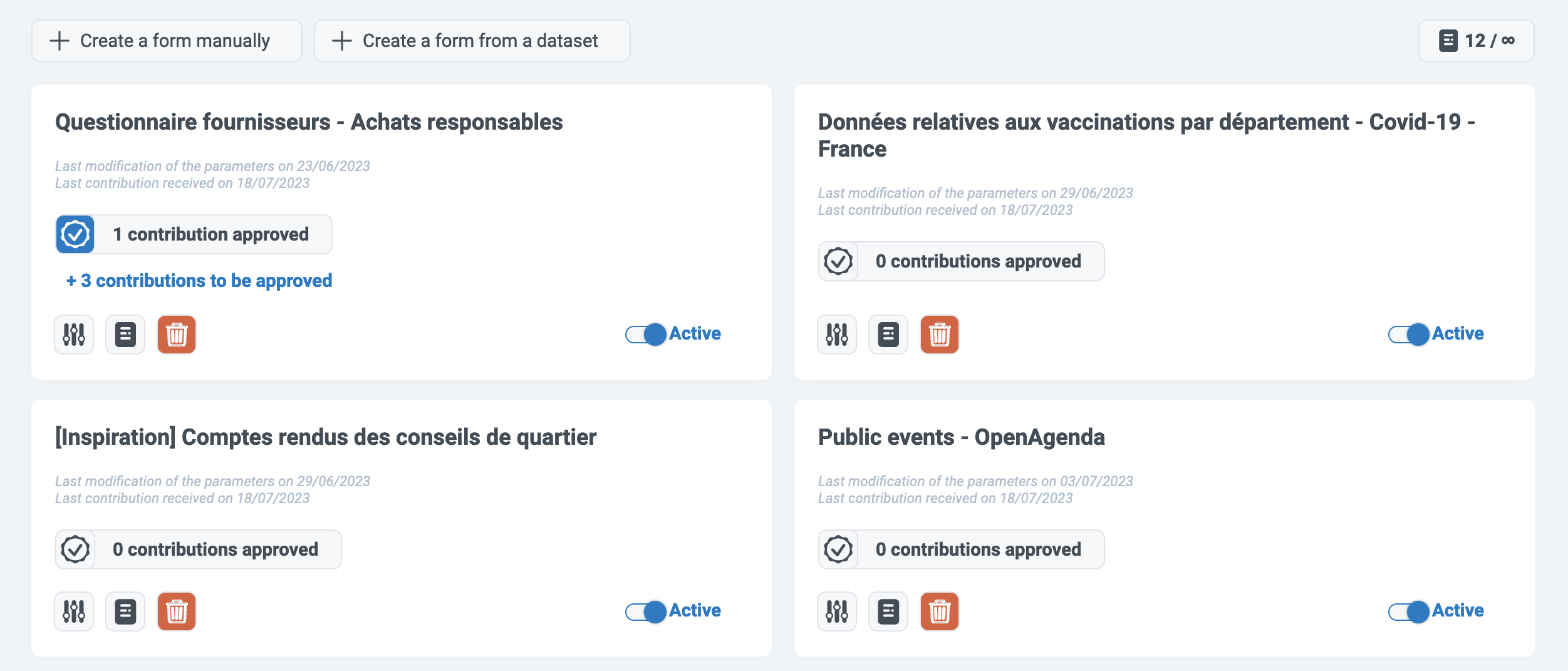Data Collection Form is a add-on feature for Huwise clients, and can be adapted to your needs (number of forms and contributions). Please contact your Customer Success Manager or fill out this form for more information.