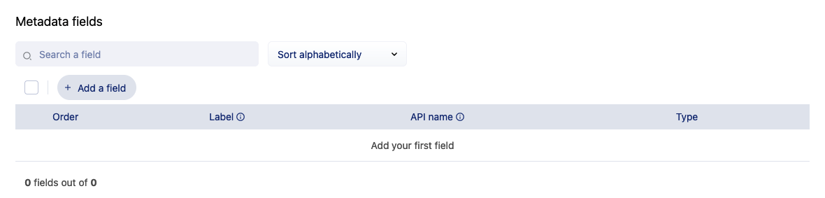 To create a new metadata field, under "Metadata fields," click on + Add a field.
