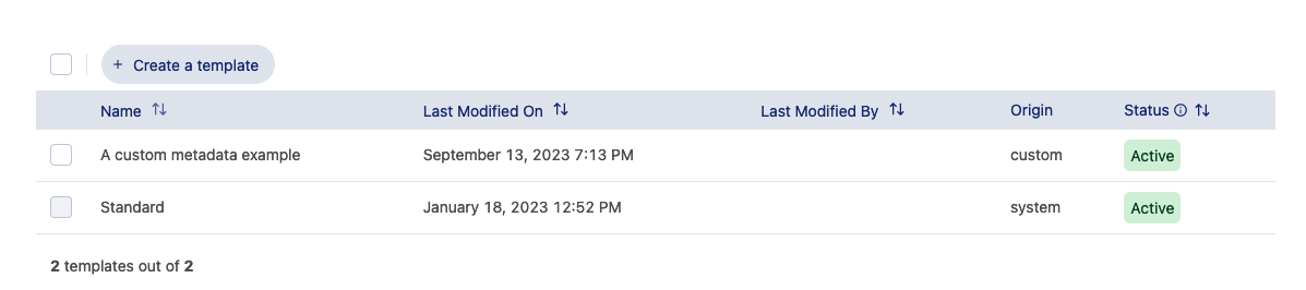 However, note that the metadata has not been deleted. Assuming no other change, if you reactivate the template, you will once again be able to see that metadata.