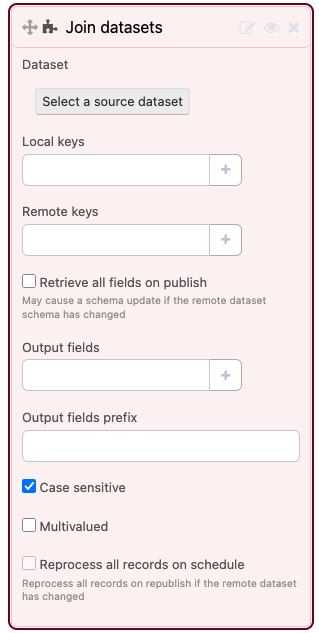 Local keys | Local field for the records you wish to use to join with the other dataset. More than one key can be specified. | Yes |