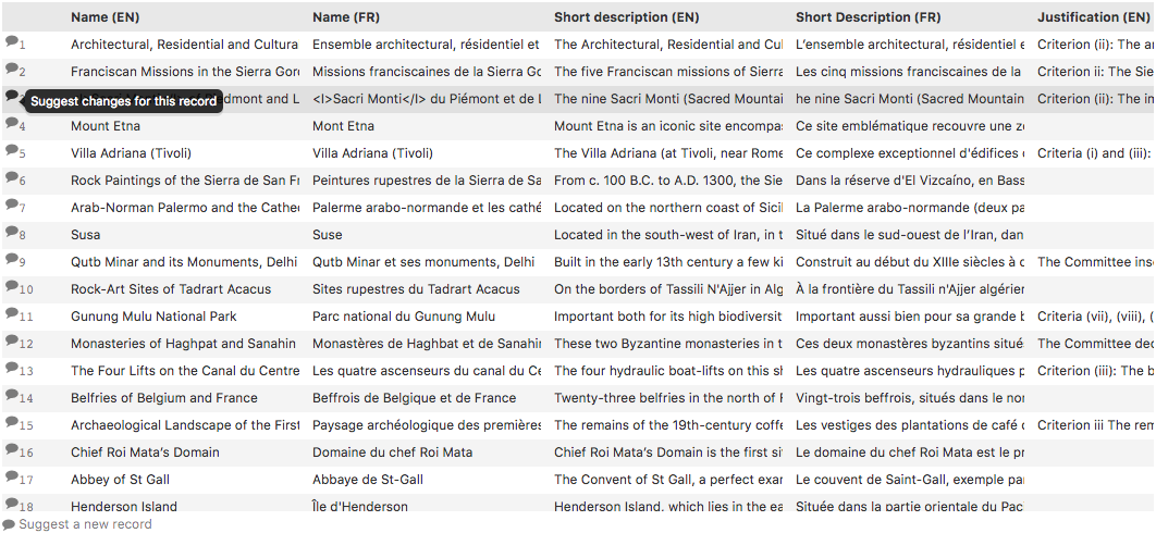Click on the bubble button on the left of the record that could be improved/modified. A "Send feedback" window opens.