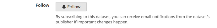 Users have the possibility to follow datasets they are particularly interested in, to be informed whenever the dataset is modified and the producer wishes to communicate it. Being able to follow a dataset is especially convenient for users whose application or use depends on the data contained in a dataset (mobile application, website, academic paper, etc.).