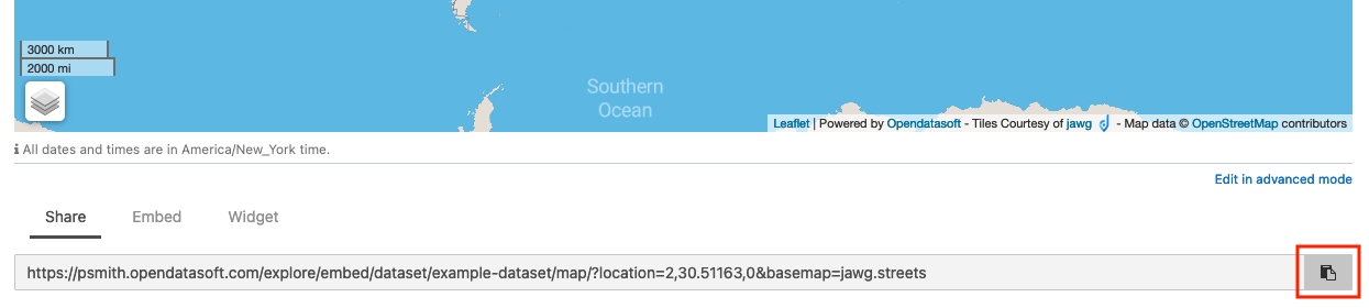 All links and codes that can be copied to either share or embed the visualization are dynamic. It means that if the visualization is filtered beforehand, the link/code changes to take into account these filters.