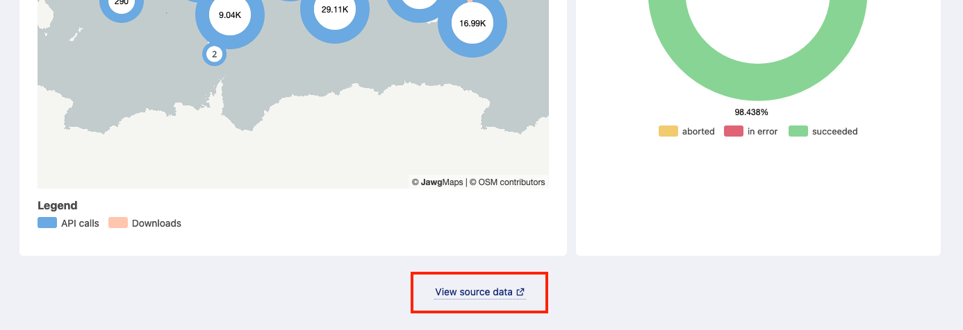To access these datasets for your workspace, go to the relevant analytics dashboard, scroll to the bottom of the page and click on the link, View source data.
