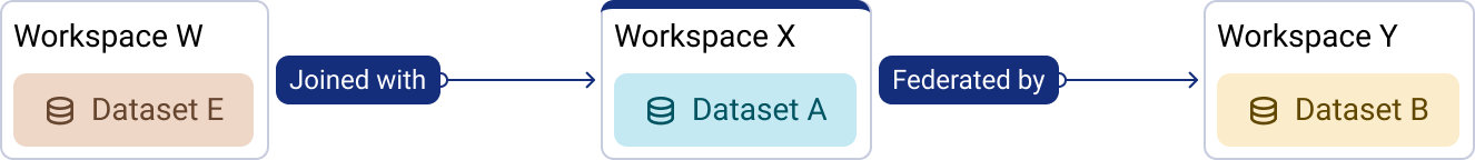 In this example, Dataset E is the origin of dataset A. In turn, Dataset A is the origin of Dataset B. Datasets E and B therefore have an indirect relationship.