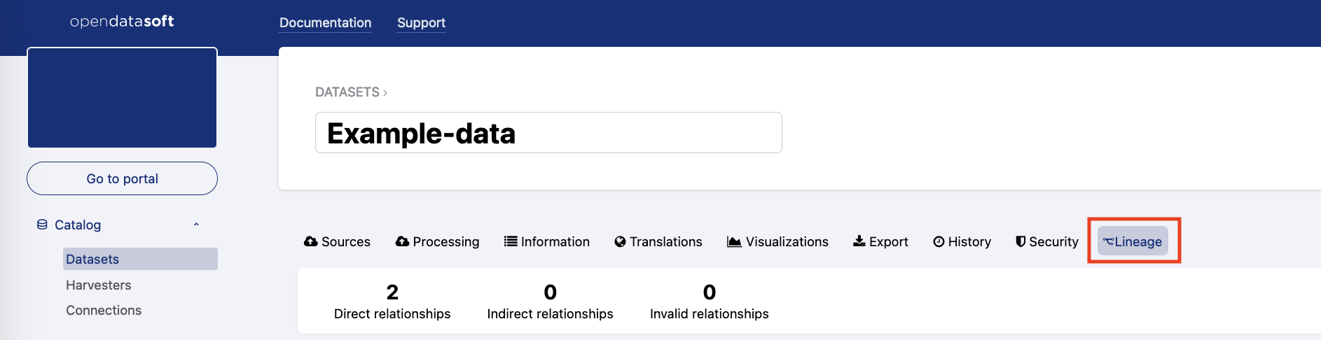 Note that the information provided in lineage is not the same as usage volume. The usage volume and the data lineage feature have different purposes. The lineage feature allows you to visualize links between Huwise objects regardless of how they are used (download count or number of API calls).