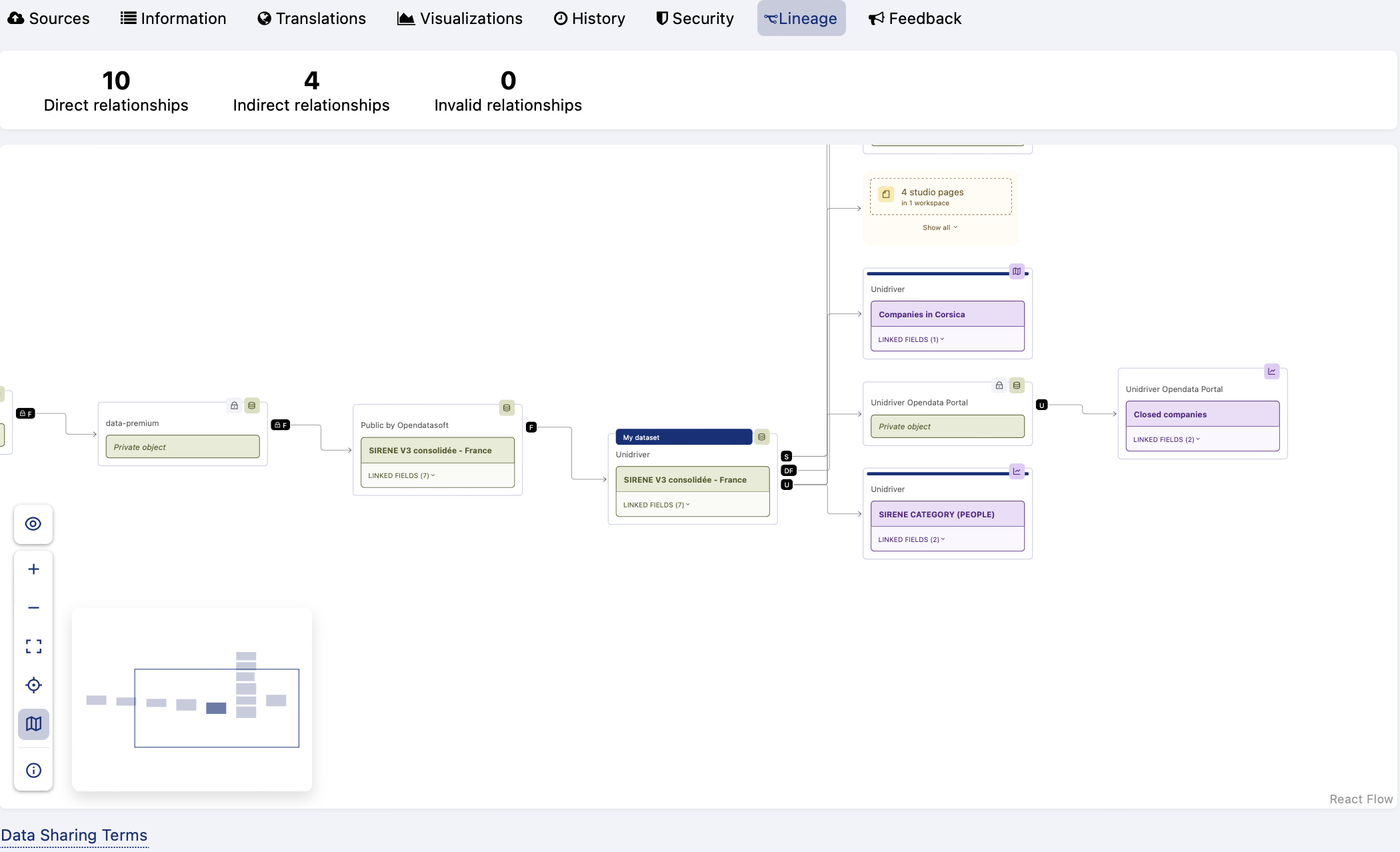 This is the minimum level of information required to provide a lineage for Huwise objects. By default and for each relationship, its type and information about the nature of the destination Huwise object are shared with the origin workspace. Third-party objects are not affected and are not visible.