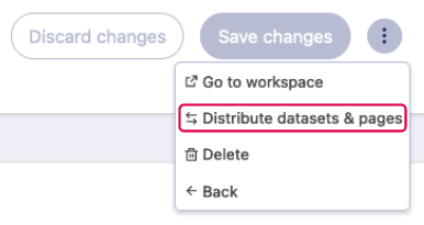 When you're already editing a workspace, you can click on the three-dot menu icon in the top right corner, then click on Distribute datasets & pages