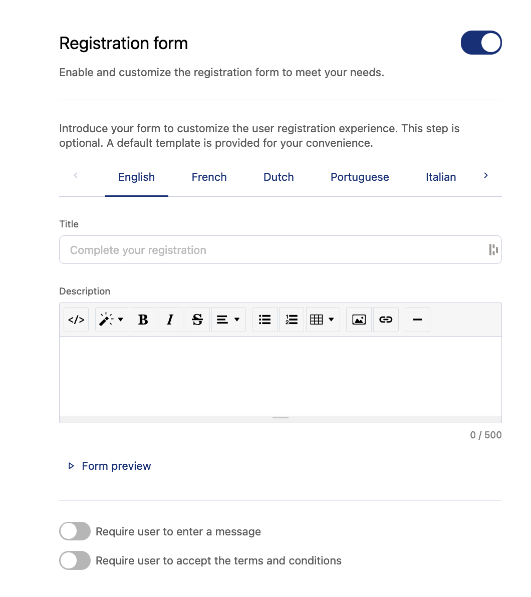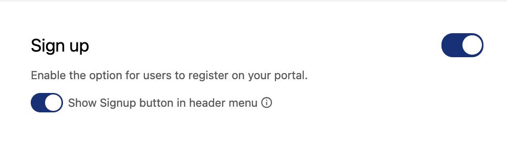 The signup process is usually very straightforward: an email, a password, and that's it. You can decide to customize the experience by setting up a custom text as a disclaimer, request users to accept your terms and conditions, and even require that they leave a message for the portal's administrator (useful when you want to manually approve access requests).