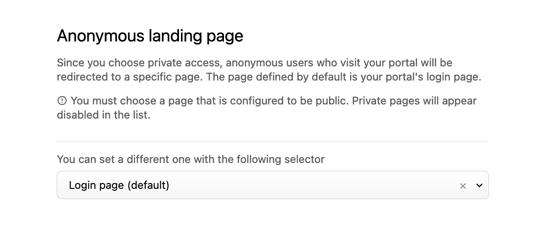Note that if you decide not to allow anonymous users to access your portal, they will be redirected to the login page unless you'd rather they land on a specific page you've written.