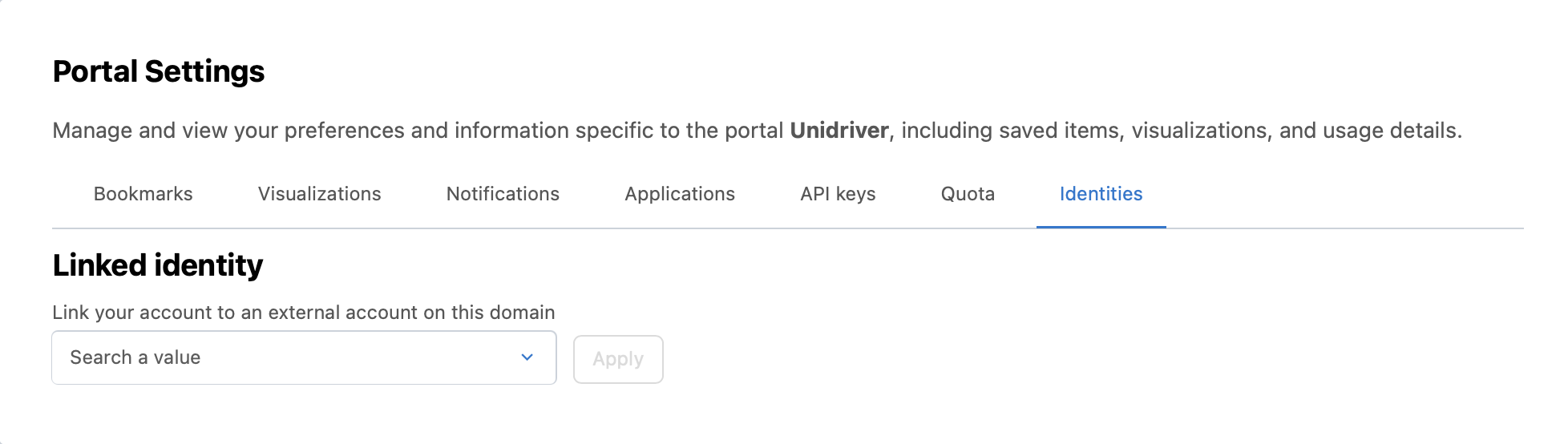 The Identities tab is available only if SSO is enabled on the portal under Access > SSO.