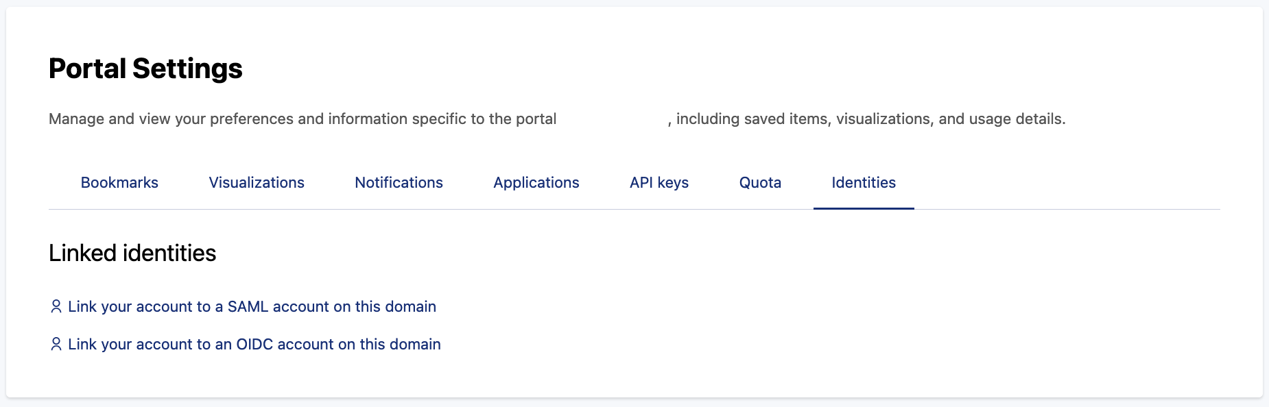 The Identities tab is only visible if SAML or OpenID Connect (OIDC) is enabled on the portal under Access > SSO.