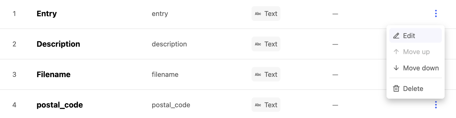 Instead, you can also reorder the fields by dragging and dropping them using the using the grip icon on the left, or else by using the up arrow and down arrow.
