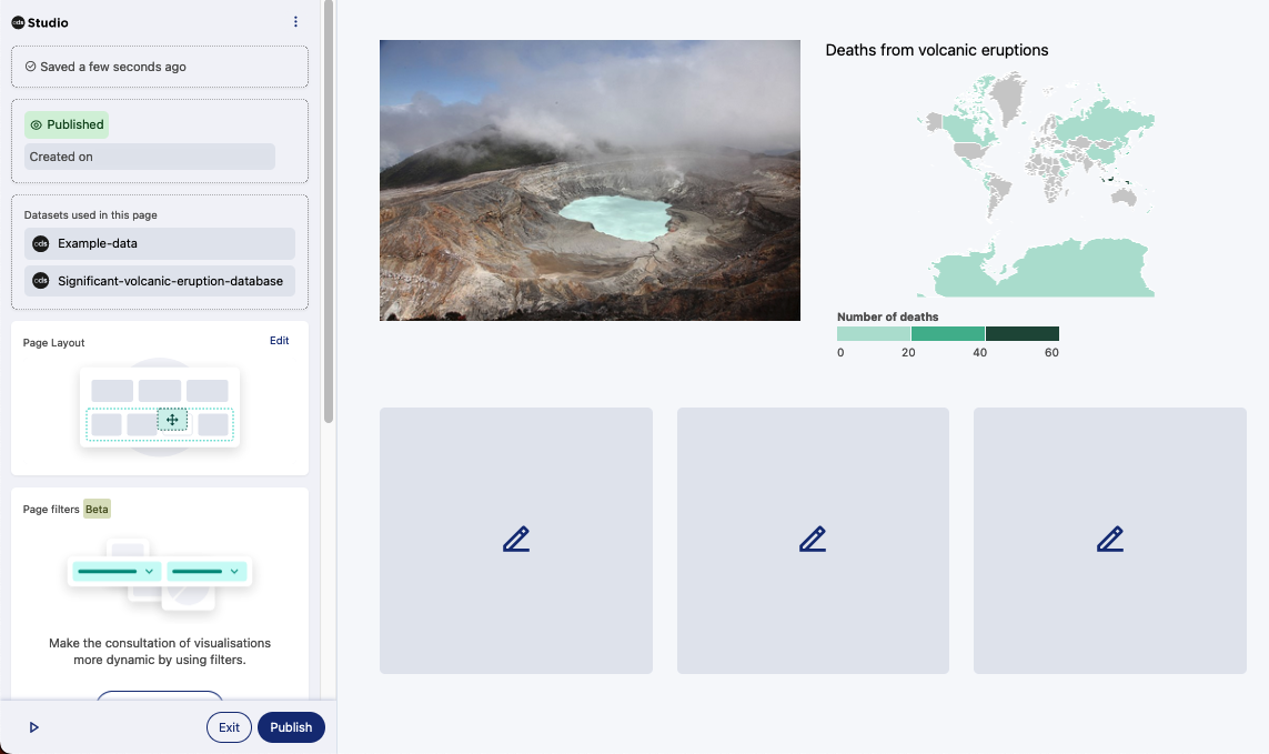 You can build all of these data stories using the Studio, a no-code editor designed to help you create powerful and accessible editorial content using your data.