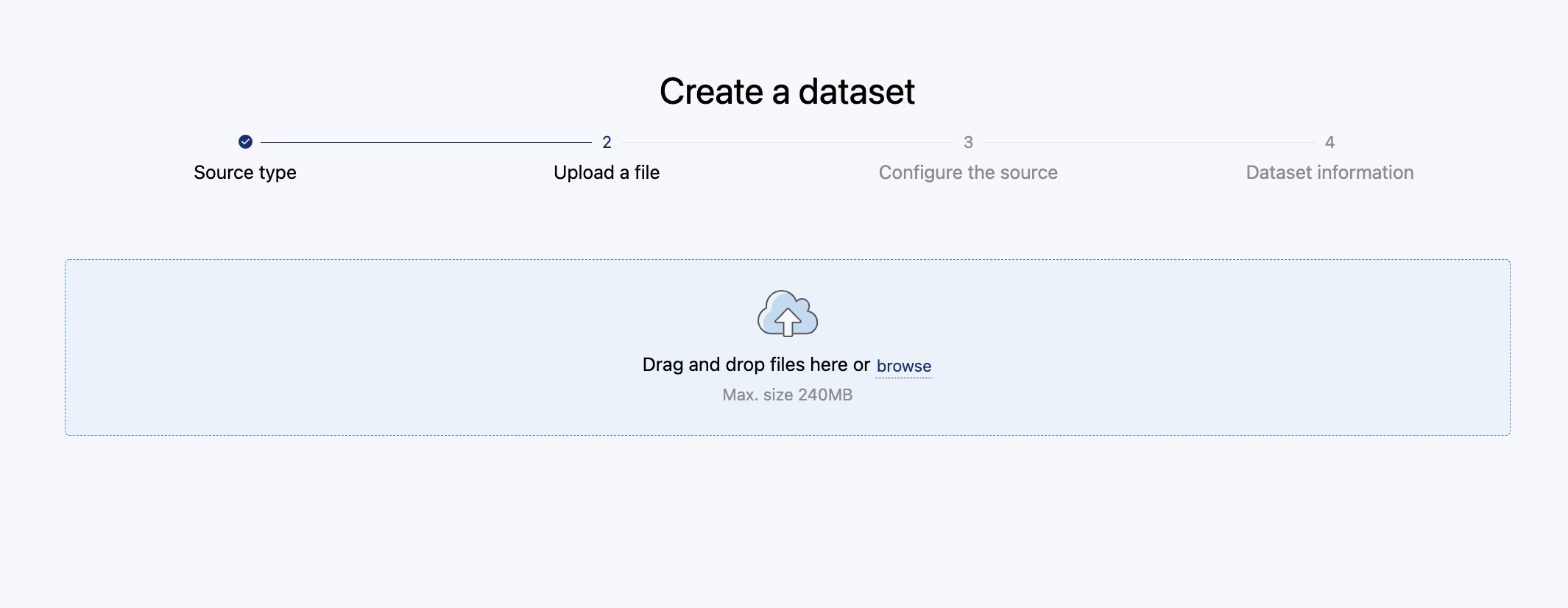 Go to your portal's back office. Select New dataset. Select From my computer.
