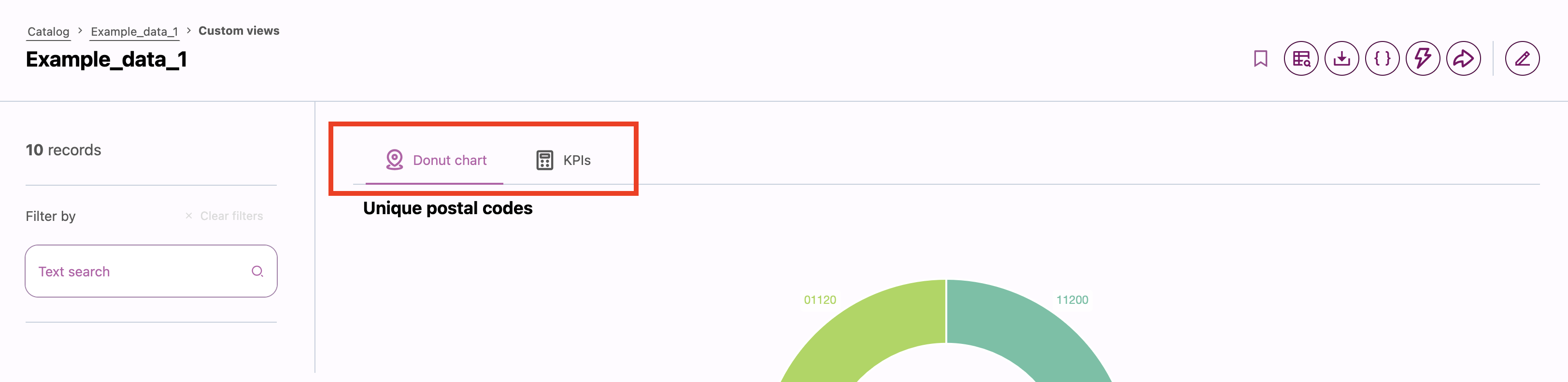 If multiple custom views are created for a dataset, they will be selectable as tabs.