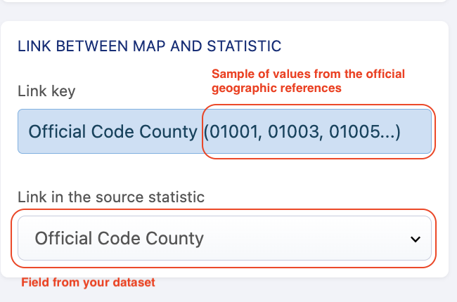 Under "Choice of statistic," select the dataset that contains the statistics to plot on the map.