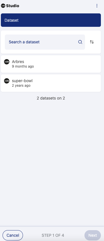 After choosing the right dataset and clicking Next, two different filters will be available: one based on a value list and the second based on date values or ranges.