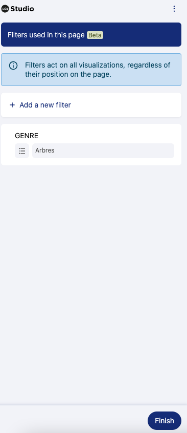 When creating a Studio page, and more generally a data visualization page, you can often use filters to make your visualizations more dynamic.