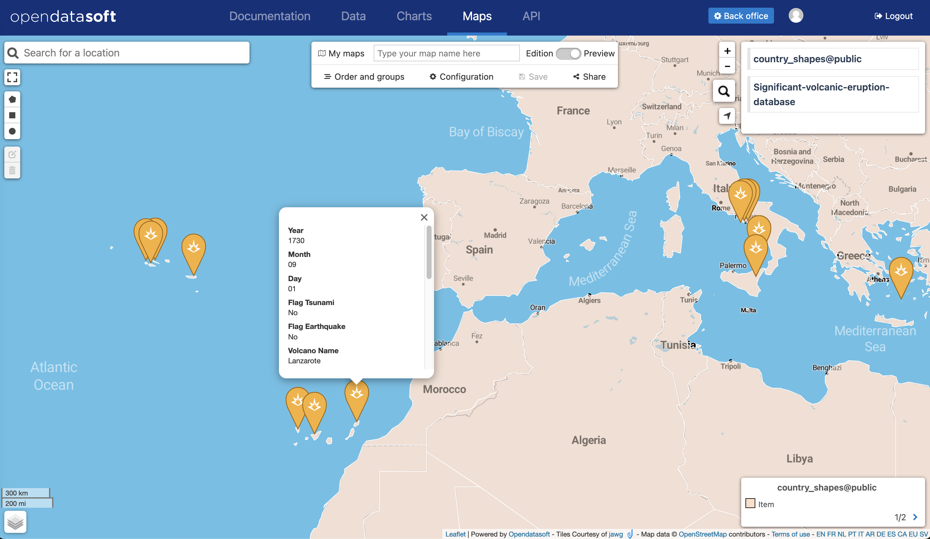 The interactive map displays your data. You can navigate on your Maps map to play with this data.