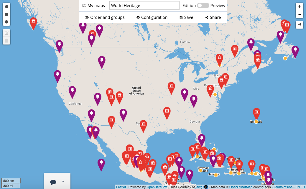 Configuration, to define which features will be activated when your map is in preview or view mode