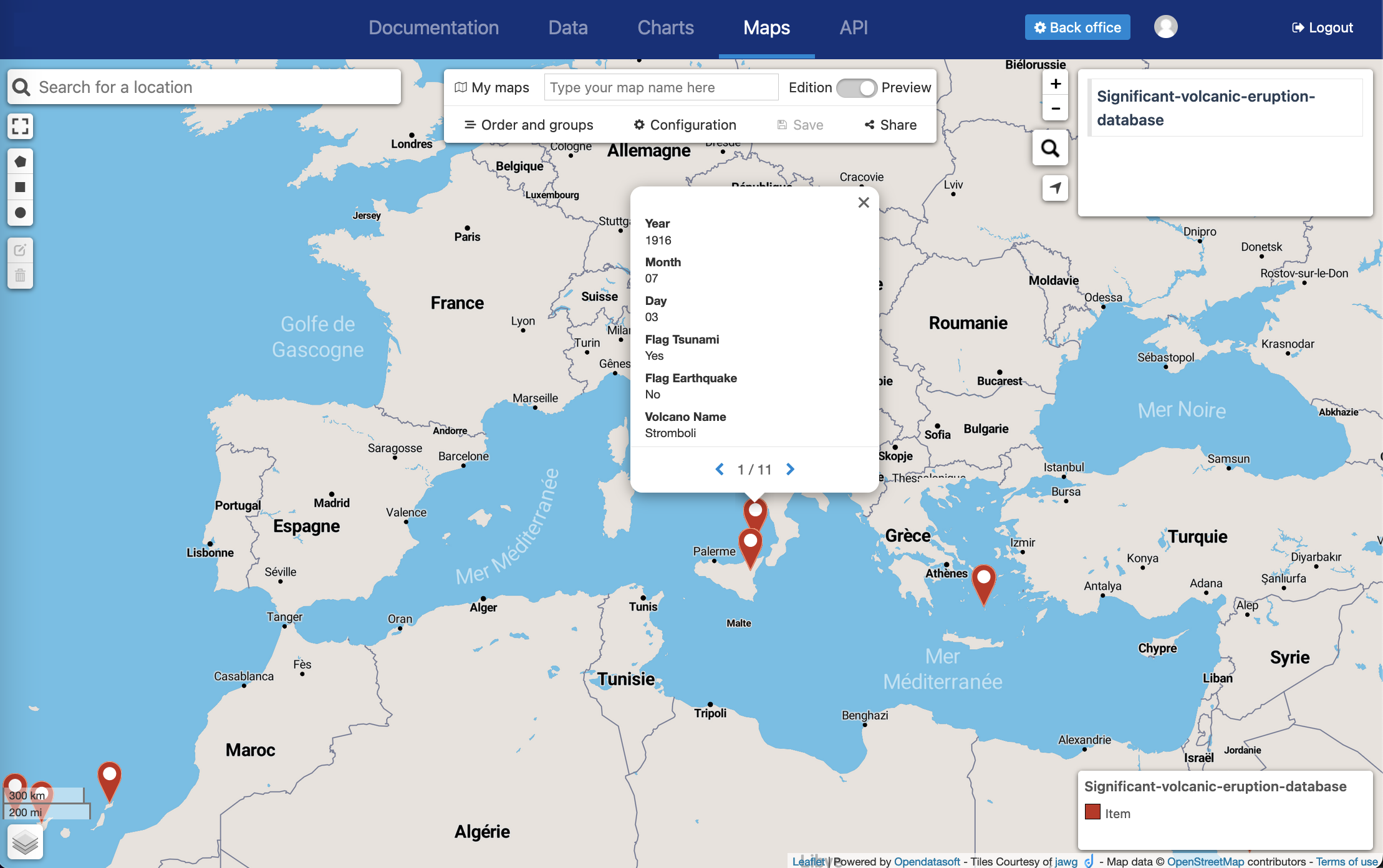 And these are the features of a map made with the Maps tool, some of which can be turned on or off in the map's configuration: