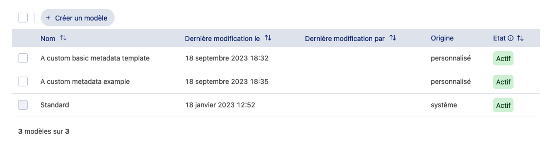 Si vous supprimez un modèle ou un champ une fois qu'ils ont commencé à être utilisés, vous perdrez définitivement les métadonnées associées.