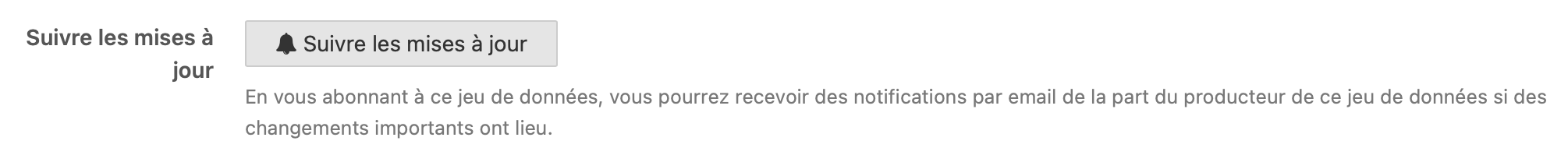 Les utilisateurs ont la possibilité de suivre les jeux de données qui les intéressent particulièrement, d'être informés à chaque fois que le jeu de données est modifié et que le producteur souhaite le communiquer. Pouvoir suivre un jeu de données est particulièrement pratique pour les utilisateurs dont l'application ou l'utilisation dépend des données contenues dans un jeu de données (application mobile, site web, article académique, etc.).