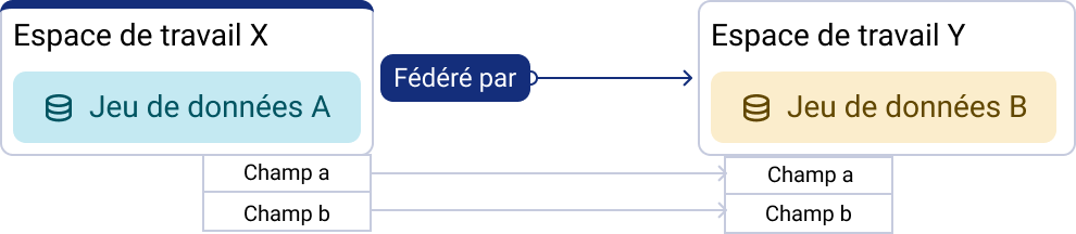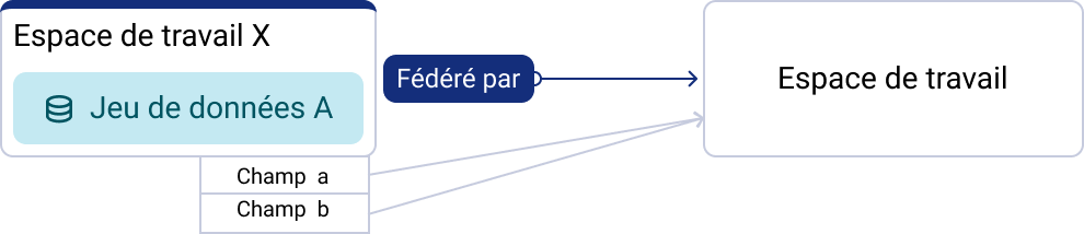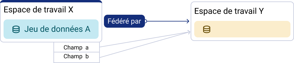 Seules les informations sur le type de relation seront partagées avec les espaces de travail concernés. C'est le niveau de connaissance minimum pour mettre en place le lignage de données en liant anonymement producteurs et consommateurs de données.
