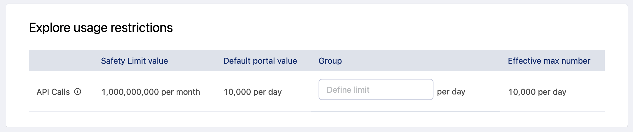 Ici, vous pouvez restreindre le nombre d'appels API pouvant être effectués par les membres d'un groupe.