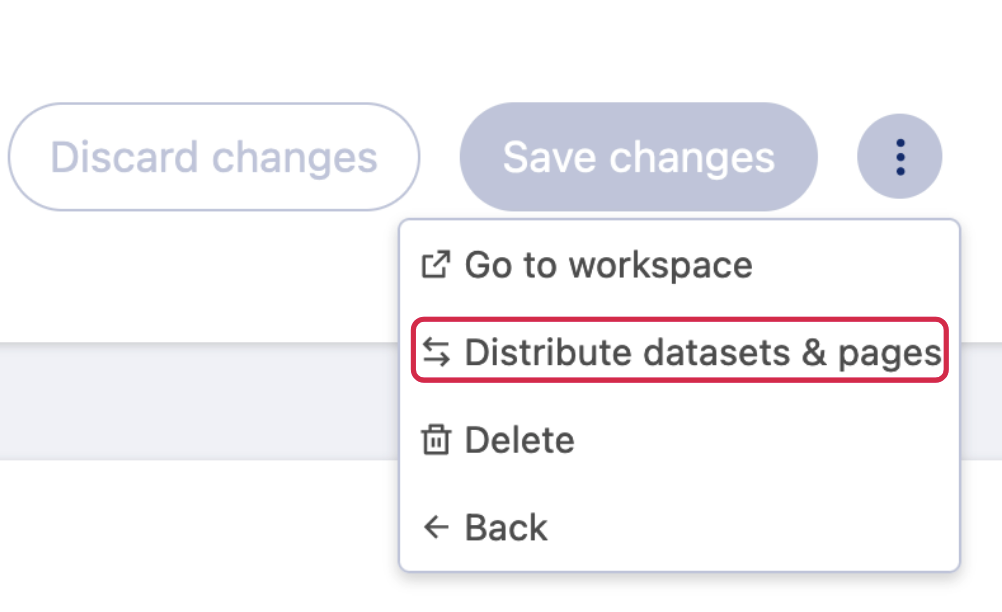 Cliquez sur le menu à trois points en haut à droite, puis cliquez sur Distribuer jeux de données & pages.