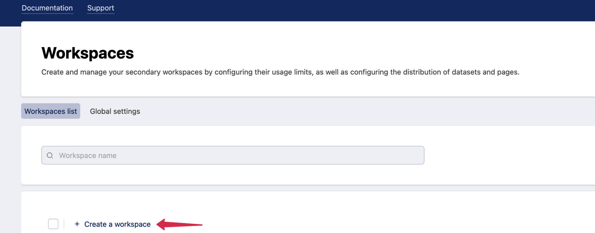 Une fois que vous êtes sur la vue récapitulative des espaces de travail, cliquez sur le bouton Créer un espace de travail.