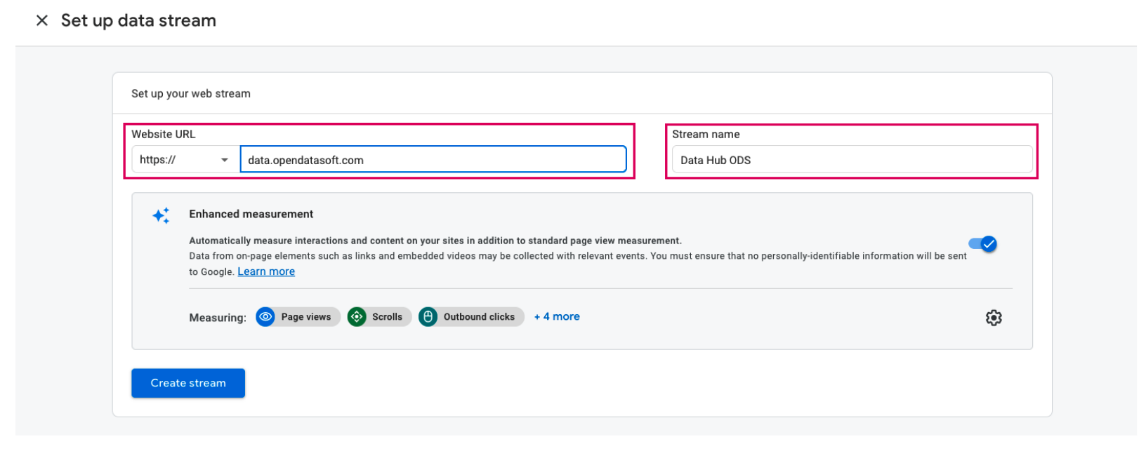 Remplissez le champ URL avec votre espace de travail Huwise et entrez un nom de flux de votre choix. Cliquez ensuite sur Créer un flux.