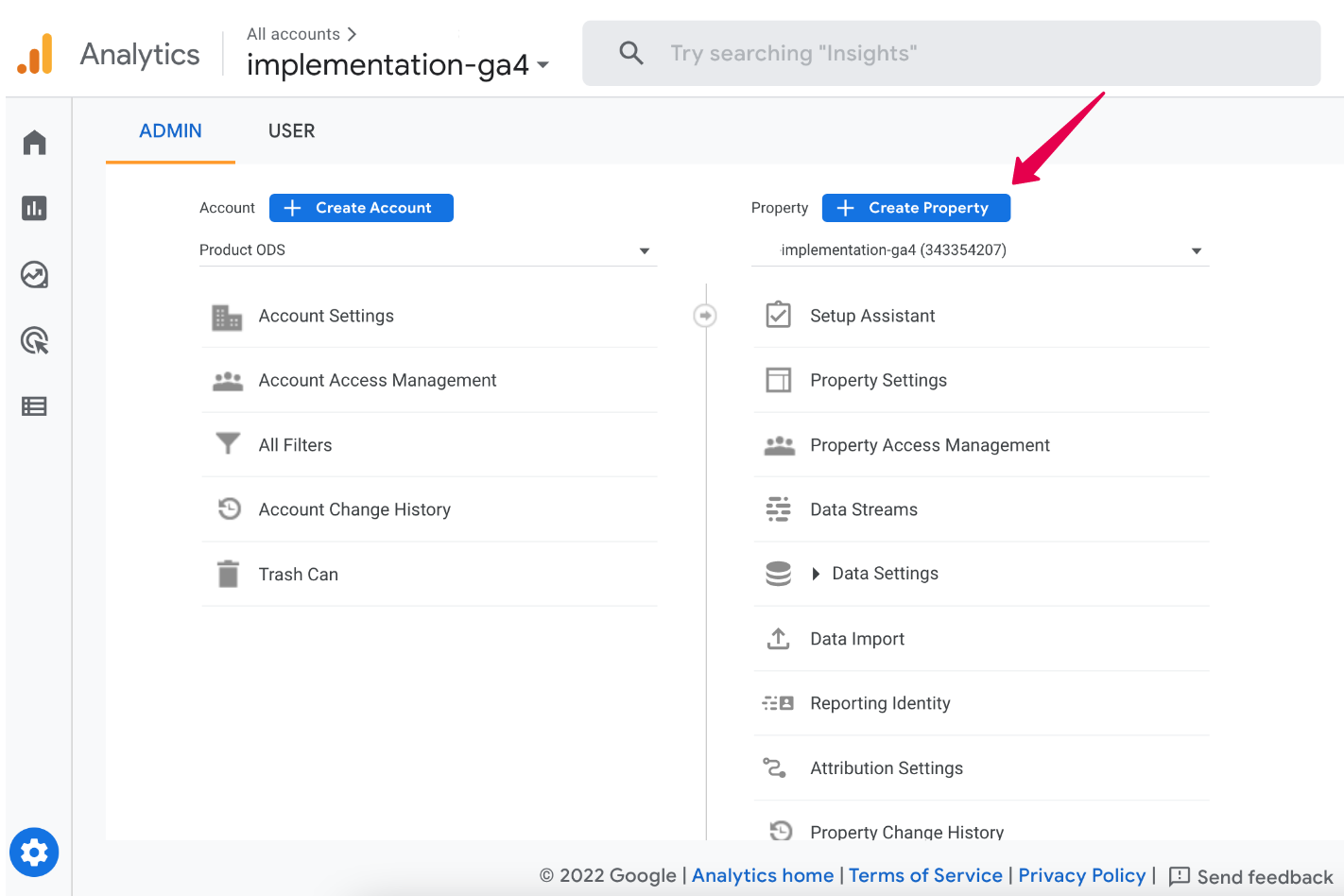 Accédez à votre administrateur Google Analytics et cliquez sur Créer une propriété.