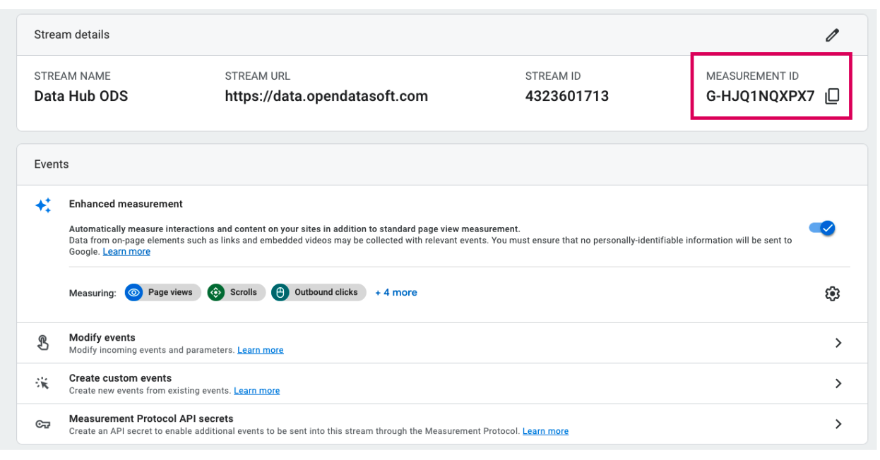 Copiez votre ID de mesure Google Analytics à partir de la propriété donnée.