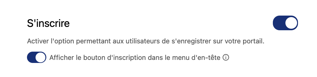 N'oubliez pas d'ajouter le bouton d'inscription à votre menu d'en-tête, sinon les utilisateurs ne verront pas le formulaire d'inscription avant d'essayer d'accéder à une zone de votre portail dont l'accès est restreint.
