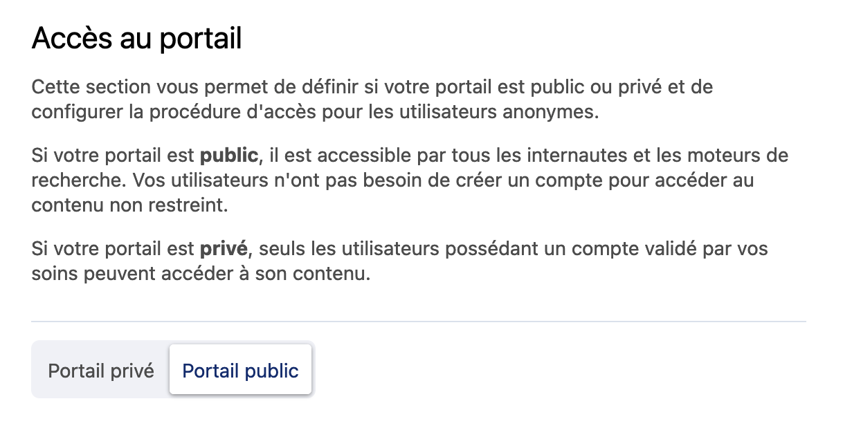 Accès au portail: Public ou privé ?