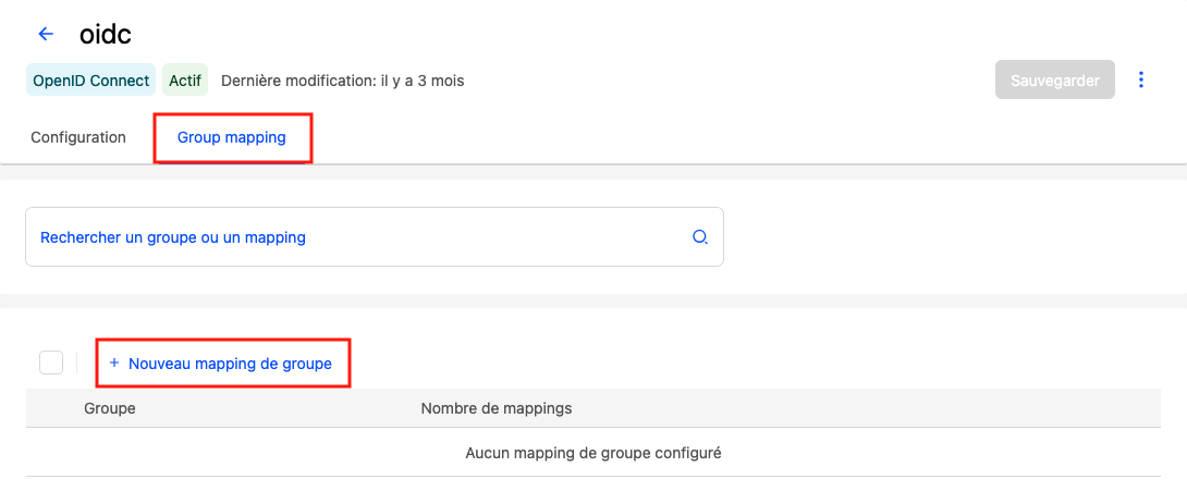 Cliquez sur l’onglet Mappings des groupes, puis cliquez sur le bouton Nouveux mapping de groupe.