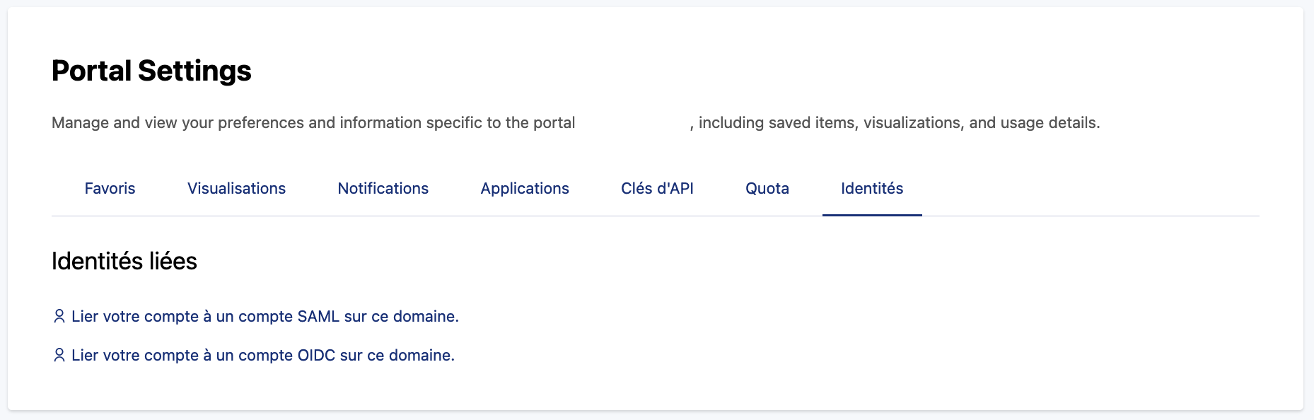 L'onglet Identités n'est visible que si SAML ou OpenID Connect (OIDC) est activé sur le portail sous Accès > SSO.