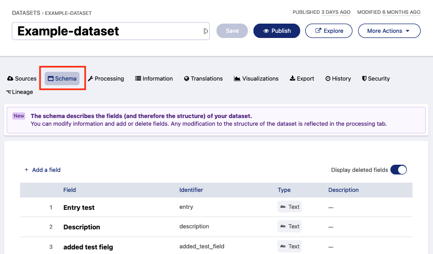 Cela se fait dans l'onglet Schéma d'un jeu de données.