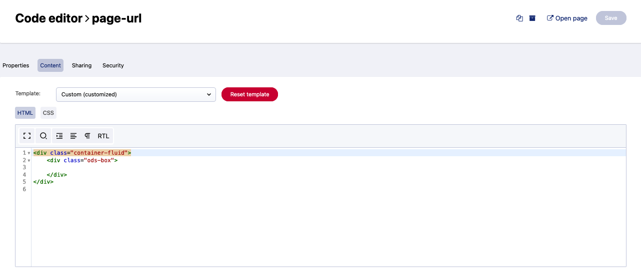 Si vous avez une page ou une application très spécifique en tête, avec des interactions ou un flux de travail précis que le Studio ne fournit pas encore, vous pouvez utiliser l'éditeur de code pour construire une page entièrement personnalisée. Cela nécessitera d'écrire du HTML et du CSS, et d'utiliser les widgets Huwise pour inclure des visualisations et des filtres.
