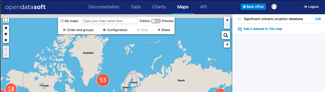 Deux applications sur votre portail sont dédiées à la création de cartes ou graphiques qui combinent plusieurs jeux de données, et sont disponibles pour tous les utilisateurs directement depuis le menu supérieur de votre portail.