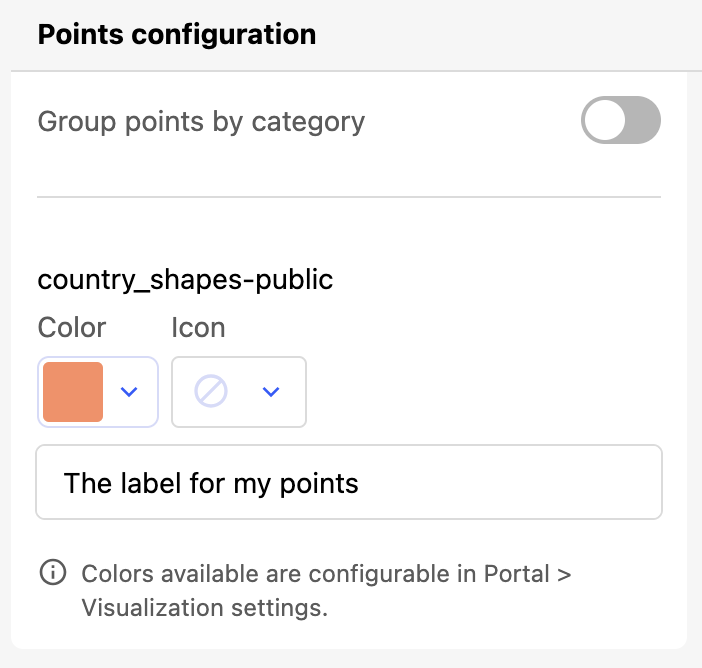 Vous pouvez personnaliser l’étiquette et la couleur utilisées pour les points sur votre carte, ainsi que choisir une icône pour leur apparence. De même, vous pouvez personnaliser l’étiquette, la couleur et l’opacité des formes.