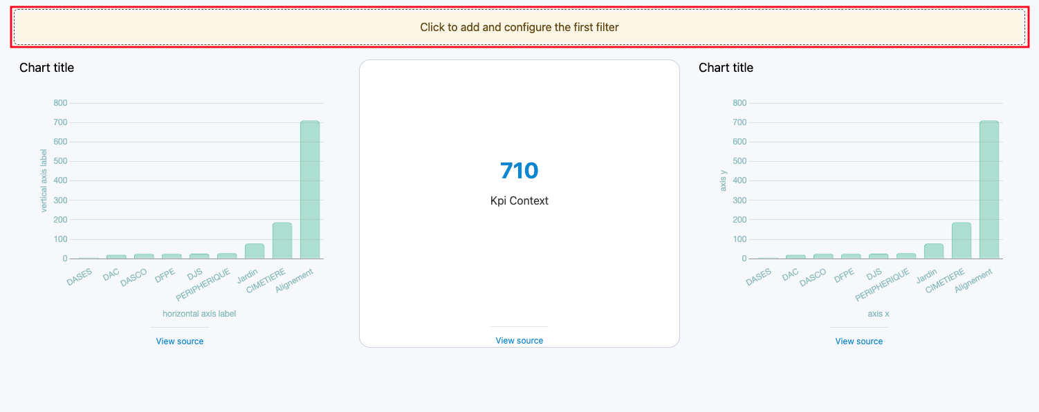 Notez que les filtres ne peuvent être ajoutés que lorsqu'au moins une visualisation de données est déjà configurée sur votre page.