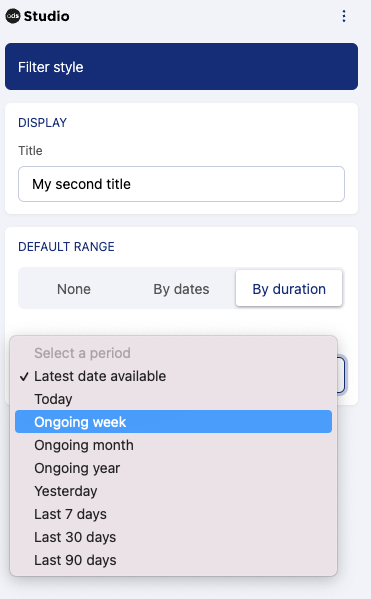 Pour ajouter des valeurs par défaut, vous aurez le choix entre définir des dates fixes comme dates de début et de fin ou une plage mobile (par exemple, la semaine dernière).