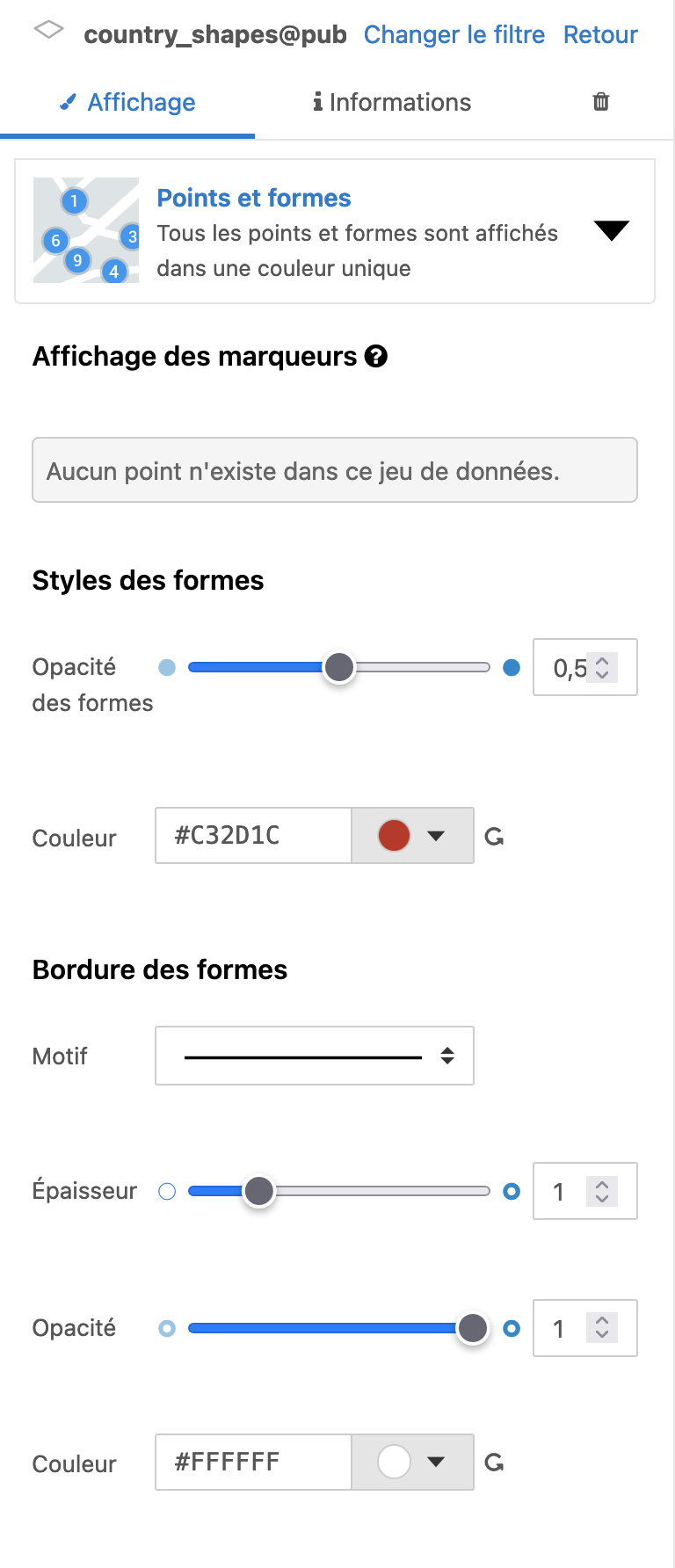 Affichage : le style, c'est-à-dire la façon dont les données sont affichées sur la carte