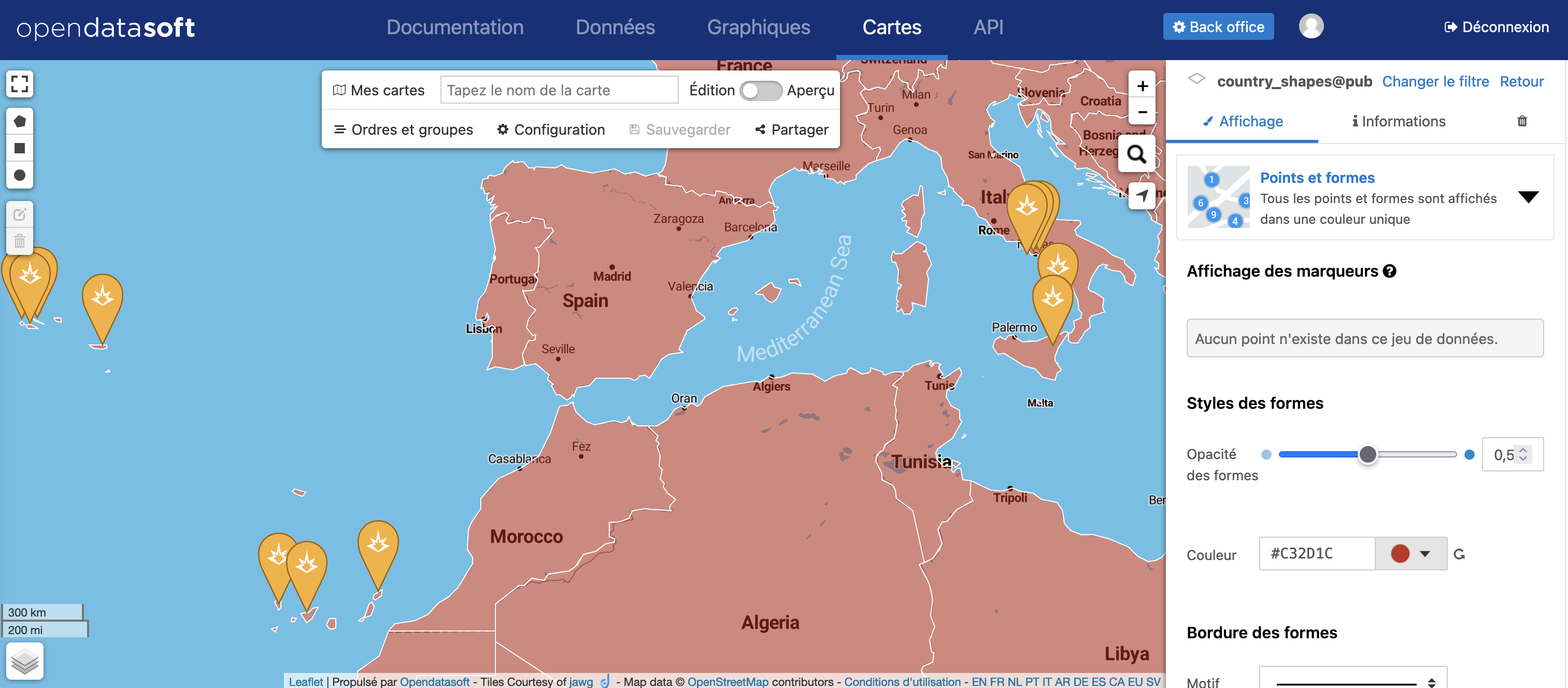 L'édition d'une couche (c'est-à-dire un jeu de données affiché sur une carte créée avec le créateur de cartes) a 2 aspects :