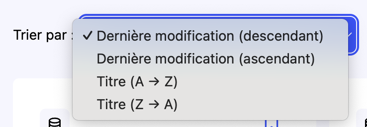 Dernière modification (décroissant) : les actifs les plus récemment modifiés apparaissent en premier